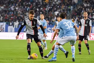 Aaron Ramsey intenta regatear a Danilo Cataldi durante la Supercopa italiana 2019 entre la Juventus y la Lazio - -/Saudi Press Agency/dpa - Archivo