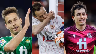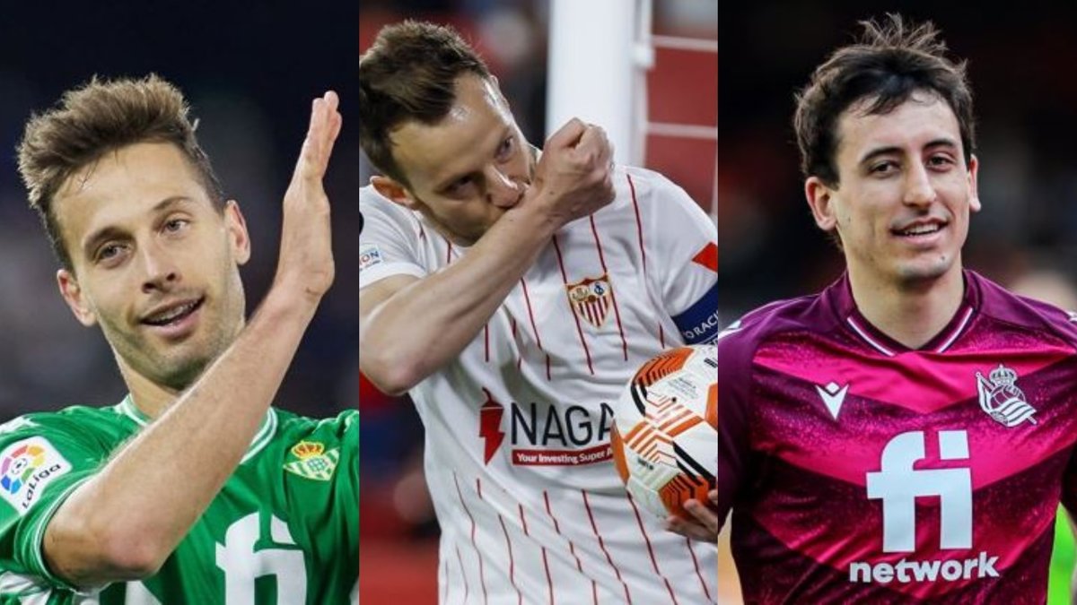 El jugador del Betis Sergio Canales, el capitán del Sevilla Iván Rakitic y el futbolista de la Real Sociedad Mikel Oyarzabal. - AFP7 / EUROPA PRESS
