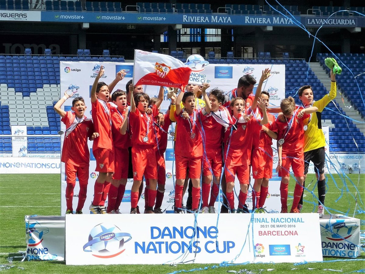 La decimoséptima edición de la Danone Nations Cup en España encumbró al Sevilla en el RCDE Stadium. El conjunto andaluz comenzó la jornada disputando un reñido partido frente al Málaga CF que acabó con un 5-3 a favor de los sevillistas.