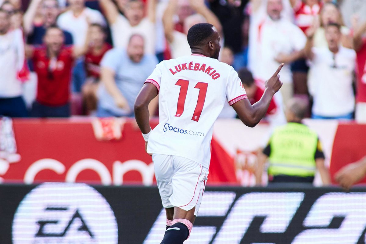 Dodi Lukébakio celebra el 2-0 en el Sevilla-Almería de LaLiga EA Sports 23-24 - Joaquin Corchero / Afp7 / Europa Press