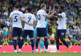 Los jugadores del Tottenham celebran un gol en la Premier League 2021-2022 - Nigel French/PA Wire/dpa