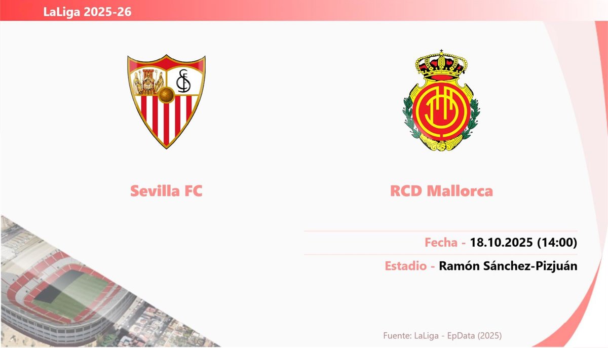 El partido que enfrenta a Sevilla y RCD Mallorca de la jornada 9 de LaLiga EA Sports 2025-26 se disputará el sábado 18 de octubre a las 14.00 horas en el Ramón Sánchez-Pizjuán.