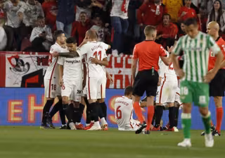Los jugadores del Sevilla celebran un gol en el partido ante el Betis de LaLiga Santander 2018-2019 - LALIGA - Archivo