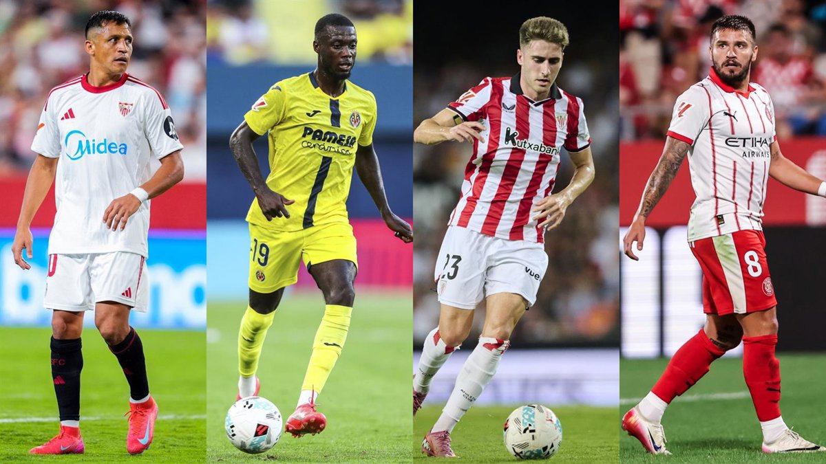 Montaje con Alexis Sánchez (Sevilla), Nicolas Pépé (Villarreal), Robert Navarro (Athletic Club) y Cristian Portu (Girona) de izquierda a derecha. - EUROPA PRESS