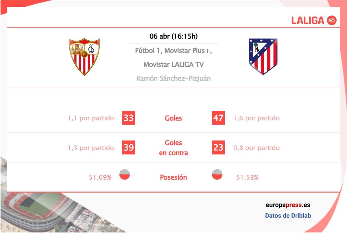 Estadísticas previa Sevilla vs Atlético de Madrid. - EPDATA