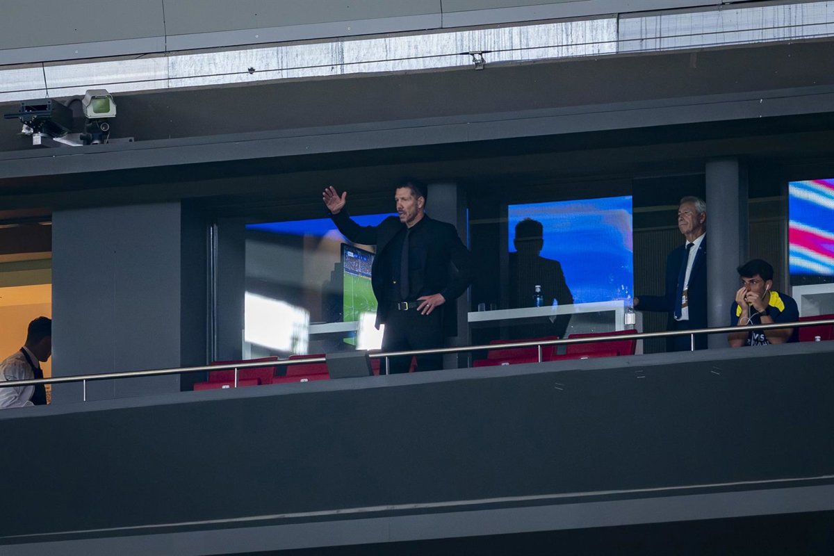 Diego Pablo Simeone, sancionado, presencia el Atlético de Madrid-Eintracht Frankfurt desde la grada del Riyadh Air Metropolitano - Europa Press/Contacto/Alberto Gardin