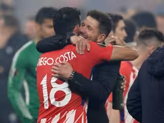 Diego Pablo Simeone se abraza a Diego Costa - REUTERS / PETER CZIBORRA - Archivo