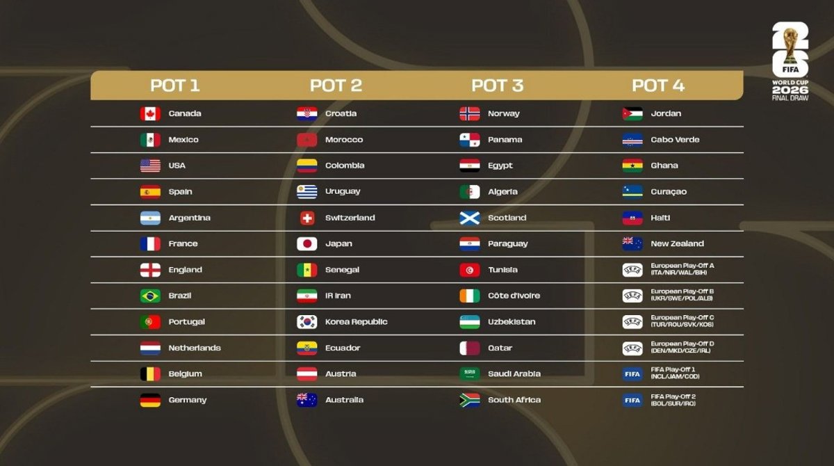 Bombos del sorteo del Mundial 2026. - FIFA