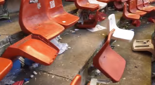 "Con la entrada de los 6 primeros autocares de aficionados visitantes se inutilizan y destrozan por estos seis cabinas nada más acceder", argumenta el Sporting, que también muestra en el vídeo que acompaña el comunicado parte de las "más de 100 butacas arrancadas o inutilizadas".