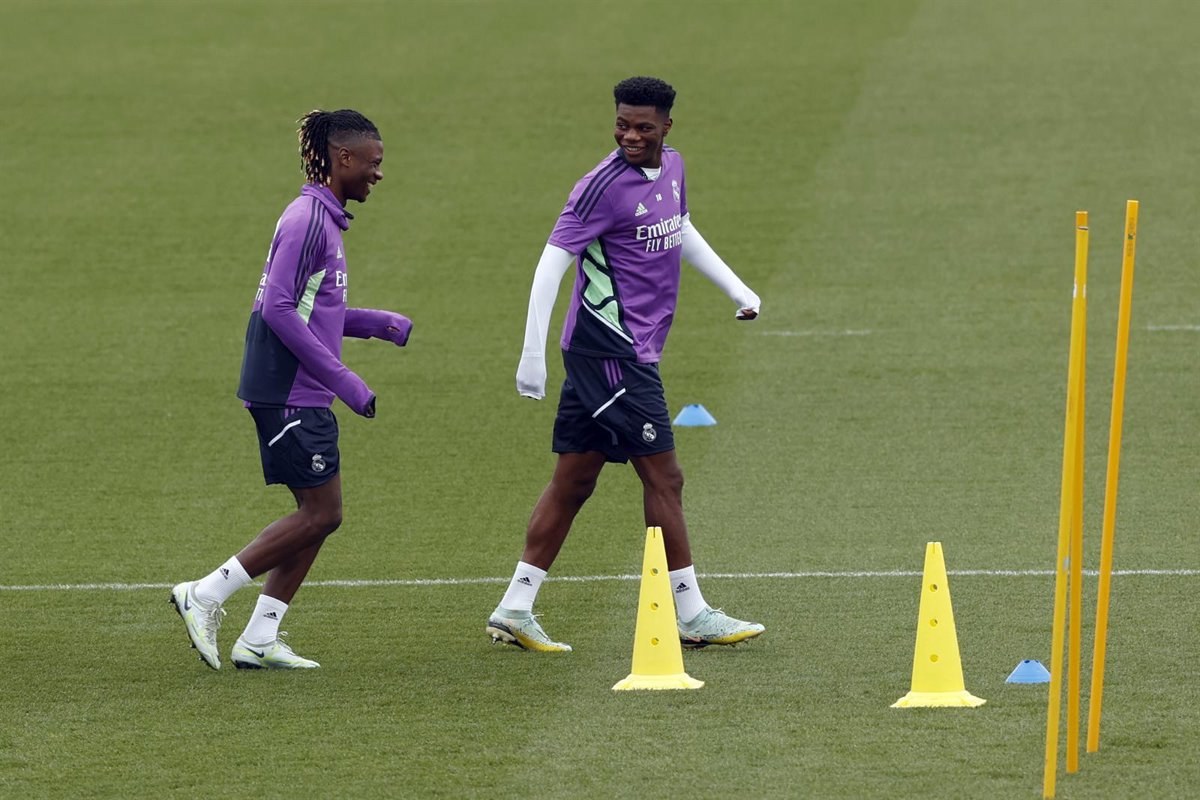 Archivo - Eduardo Camavinga y Aurélien Tchouaméni en un entrenamiento del Real Madrid - Lagencia/LaPresse via ZUMA Press / DPA - Archivo