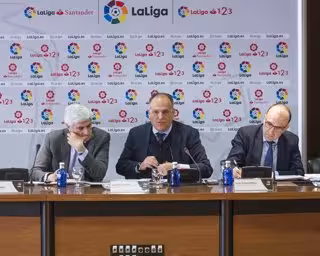 Tebas informó de que en la Asamblea de la patronal de clubes se abordó la estrategia de LaLiga respecto a la televisión -expiran cerca de 22 del total de los 60 contratos que tiene firmados LaLiga- y los entornos digitales. "Dentro de año y medio terminan los actuales contratos en la Unión Europea. En estrategia digital debemos mejorar muchísimo para aumentar el valor comercial de los clubes", señaló.