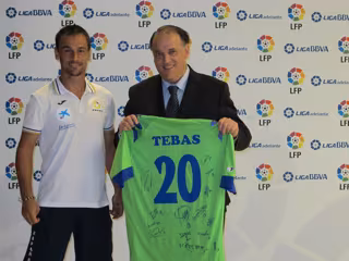 Los miembros de la selección española y de la Federación agradecieron "el apoyo recibido a la LFP y a su presidente", al que han hecho entrega de una camiseta del equipo, con su nombre, firmada por todos sus integrantes. Tebas aseguró que la camiseta "ocupará un lugar destacado en la sede de la LFP".