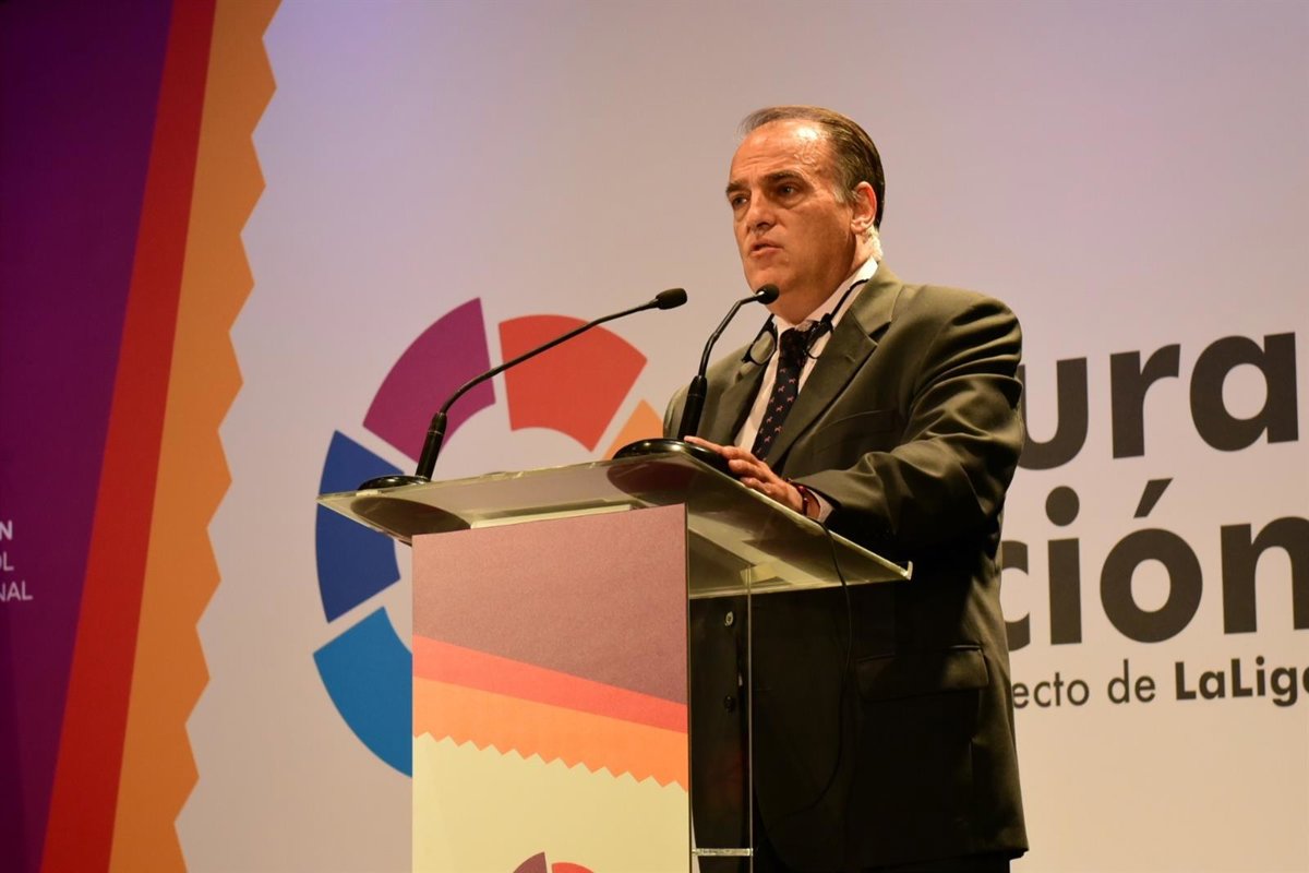 Así se manifestó Javier Tebas este jueves en Málaga en un coloquio organizado por el 'Diario Sur', en el que el presidente de LaLiga habló sobre 'La industria del fútbol y su impacto socioeconómico', así como de la adjudicación de la explotación de los contenidos audiovisuales y la reducción de la deuda en el fútbol español.