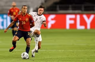 Archivo - Spain's Thiago Alcantara and Germany's Julian Draxler battle for the ball during the UEFANations League A - Christian Charisius/dpa - Archivo