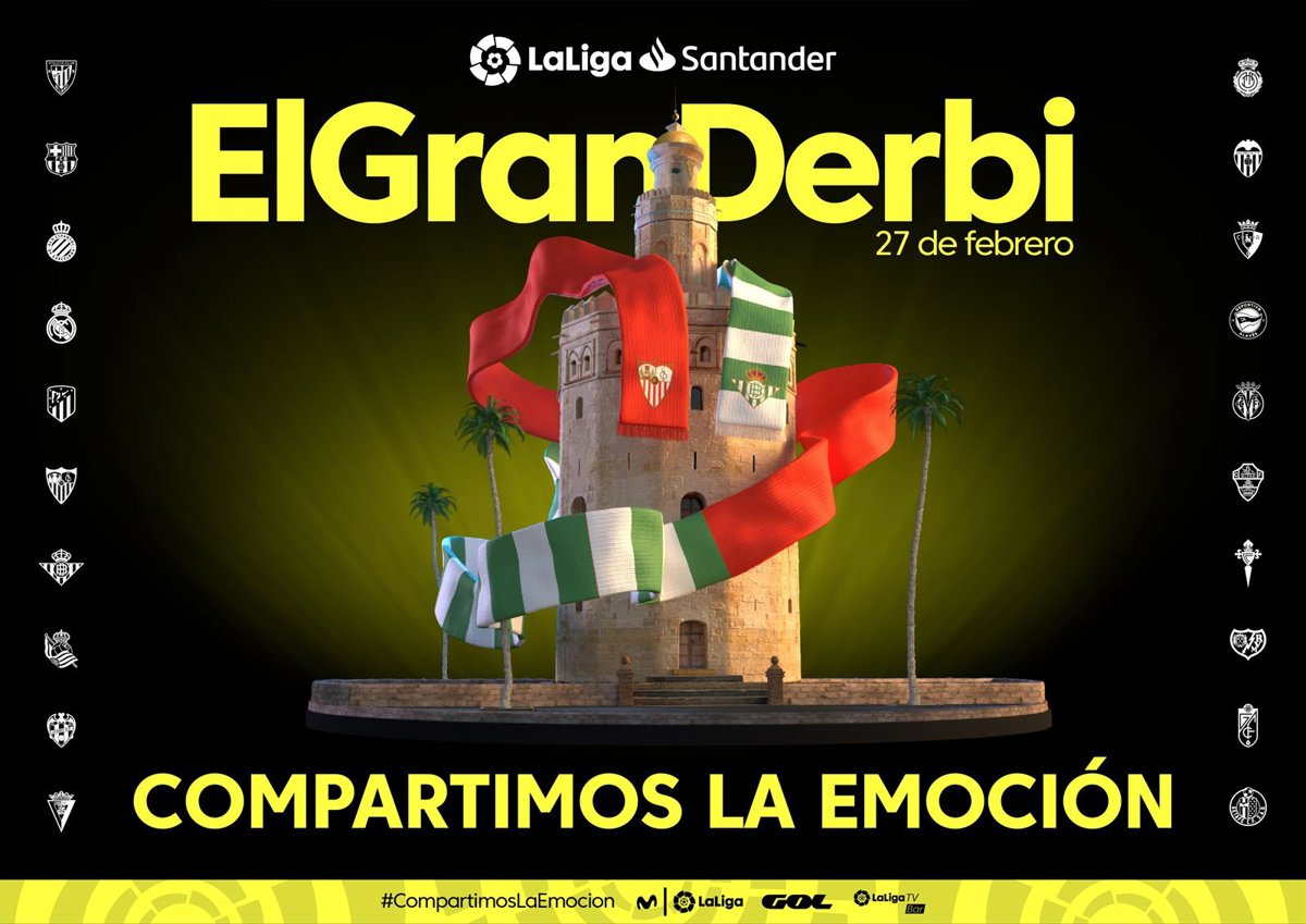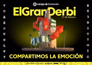Este sábado 26 de febrero LaLiga colgará una bufanda gigante con los colores de Sevilla FC y Real Betis en la Torre del Oro de la ciudad hispalense para promocionar el 'Gran Derbi' del domingo en el Ramón Sánchez-Pizjuán, correspondiente a la jornada 26 de LaLiga Santander.