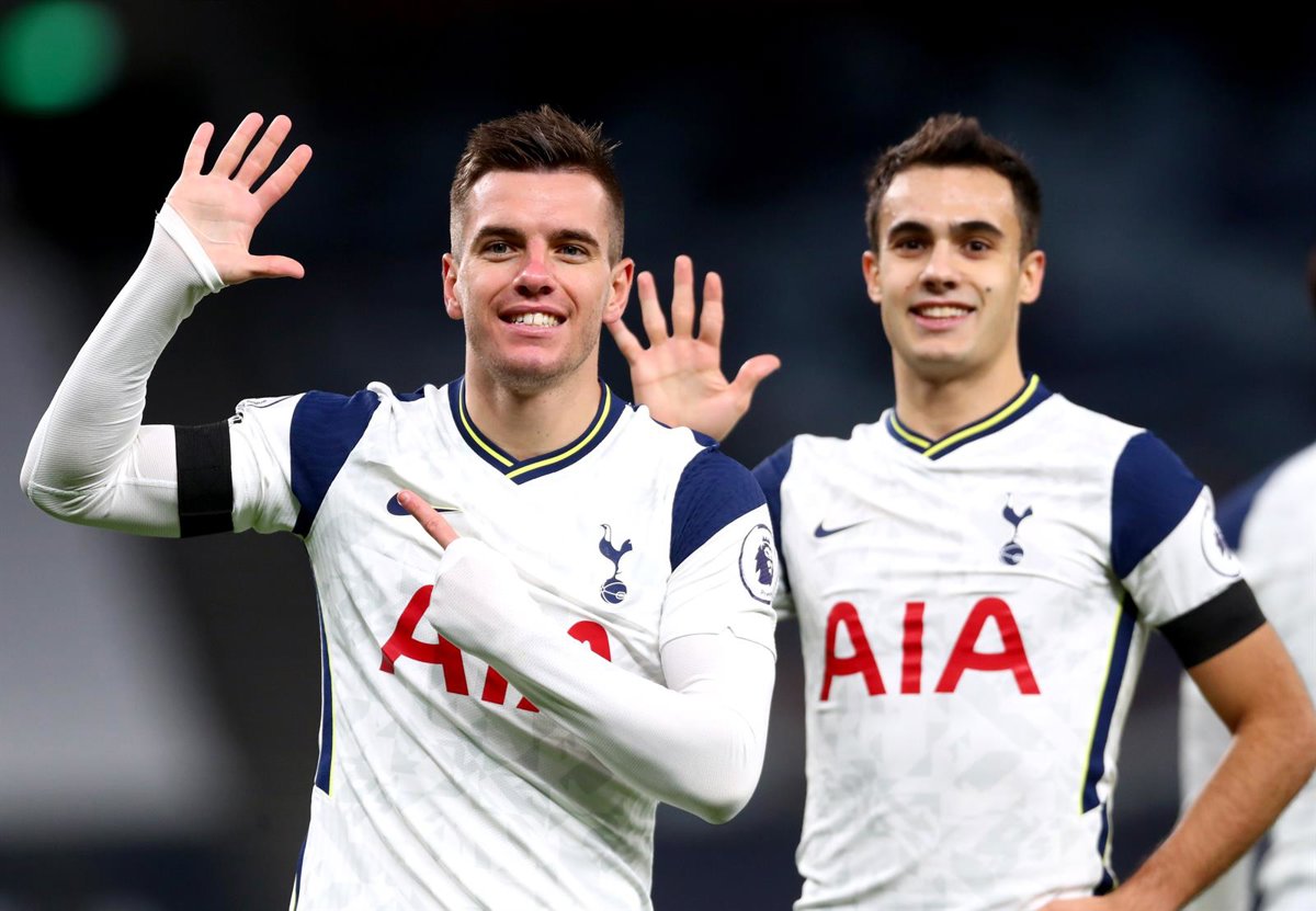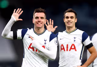 Giovani Lo Celso y Sergio Reguilón celebran el segundo tanto del Tottenham - Clive Rose/PA Wire/dpa
