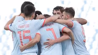 ESPAÑA: Sivera; Aguirregabiria, Vallejo, Meré, Junior Firpo; Ceballos, Dani Olmo, Merino; Soler (Fornals, min. 46), Mayoral (Rafa Mir, min. 68) y Oyarzabal (Pedraza, min. 68).
