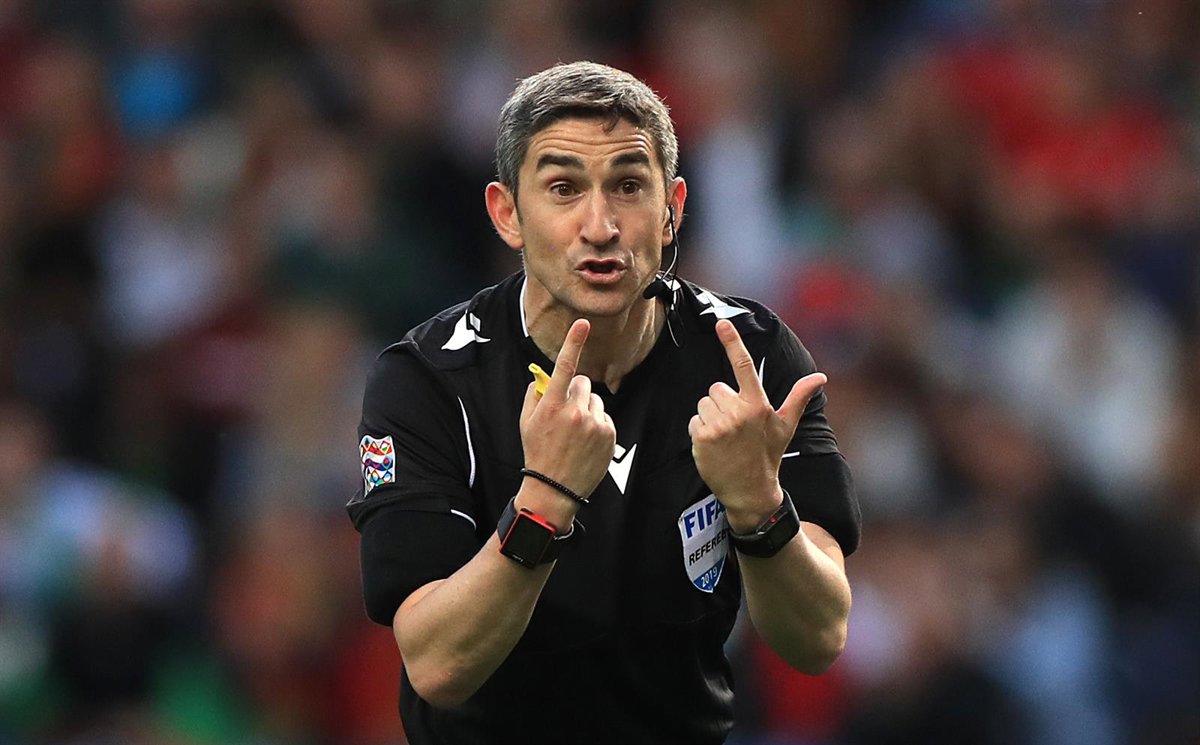 09 June 2019, Portugal, Porto: Match referee Alberto Undiano Mallenco gestures during the UEFANations League Final soccer match between Portugal and Netherlands at the Estadio do Dragao. Photo: Mike Egerton/PA Wire/dpa - Mike Egerton/PA Wire/dpa