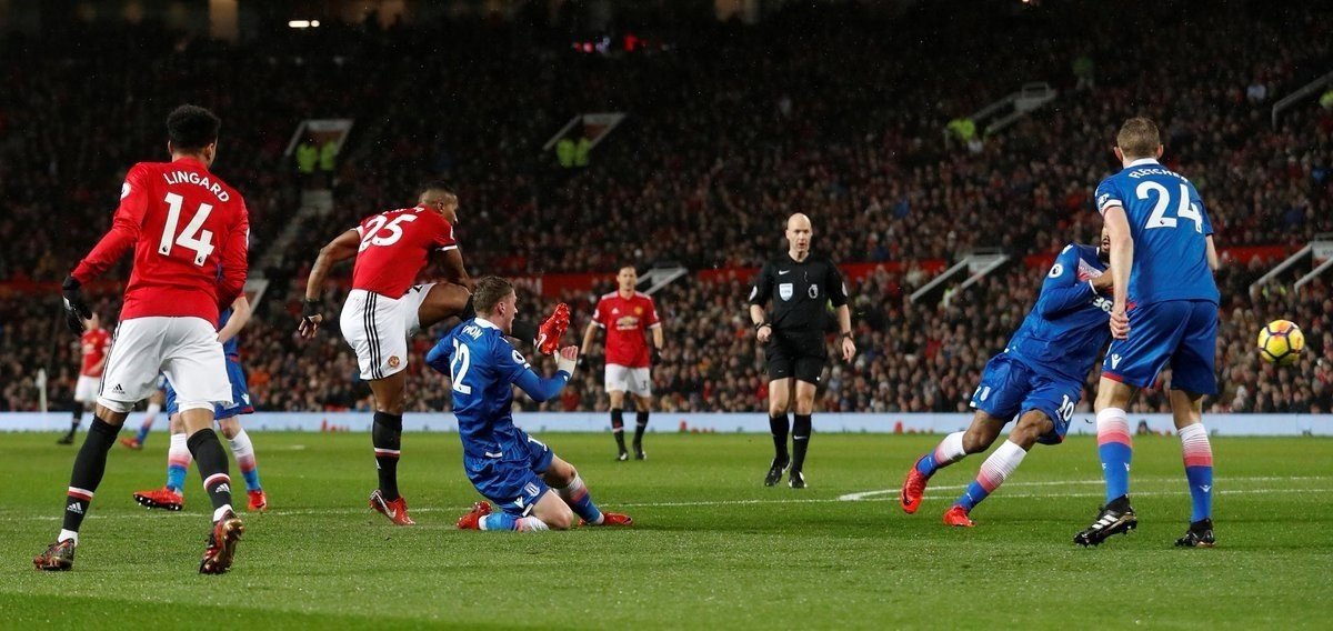 Los 'red devils' se adelantaron muy pronto en el marcador; a los 10 minutos, Antonio Valencia se perfiló en el pico del área para poner el balón en la escuadra adelantando a su equipo. Con el 1-0, el United se relajó y el Stoke rozó en varias ocasiones el empate por medio del suizo Shaqiri, Choupo-Moting o Stephen Ireland, que se topó con David de Gea. No obstante, Anthony Martial amplió distancias antes del descanso con un fortísimo disparo desde la frontal.