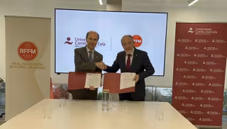 La Universidad Camilo José Cela (UCJC) y la Real Federación de Fútbol de Madrid (RFFM) han firmado un convenio de colaboración para integrar la formación UEFA para los entrenadores de fútbol como complemento al Grado en Ciencias de la Actividad Física y del Deporte (CAFyD) de dicho centro académico.