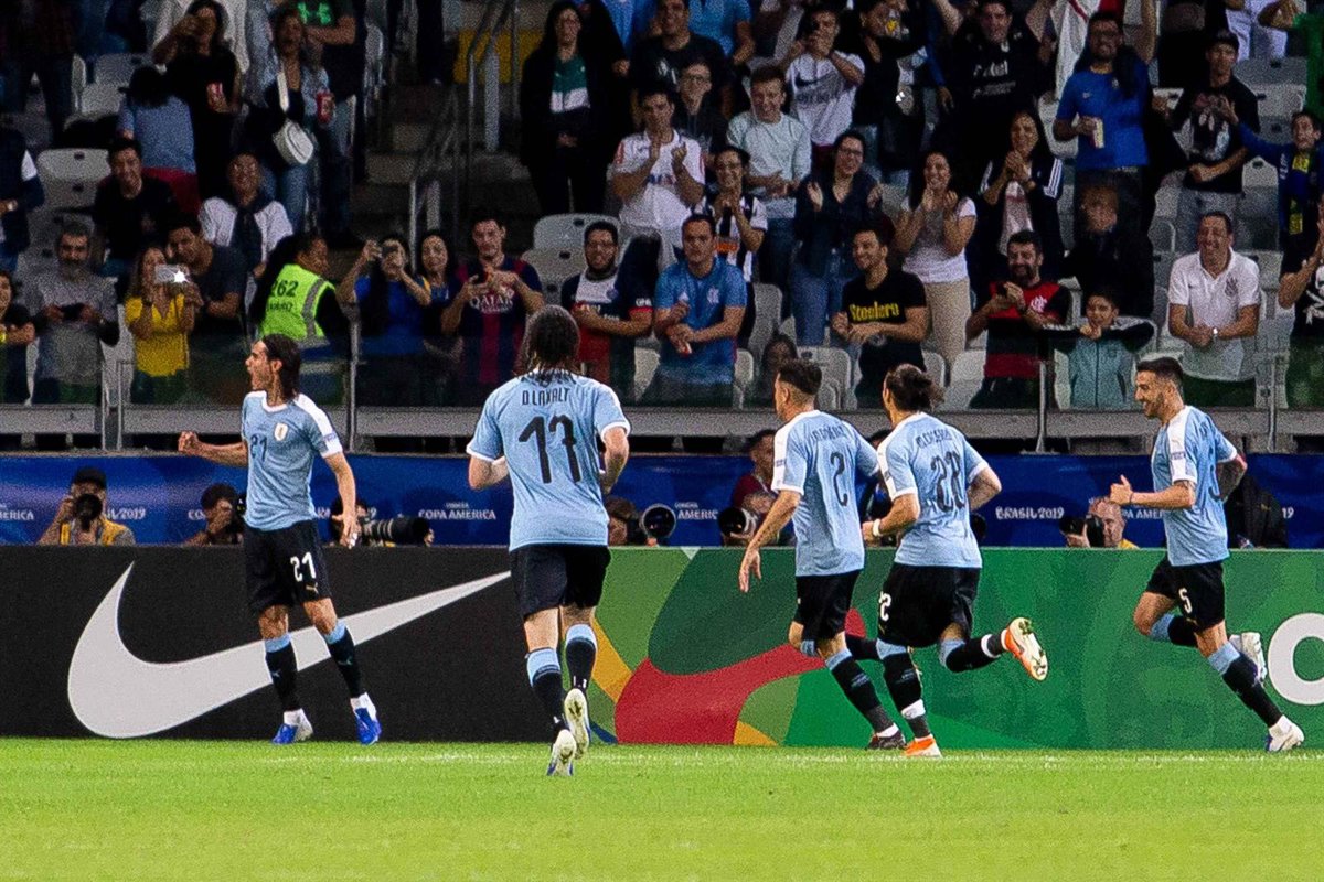 16 June 2019, Brazil, Belo Horizonte: Uruguay's Edinson Cavani (L) celebrates scoring during the 2019 Copa America Group C soccer match between Uruguay and Ecuador at the Mineirao Stadium. Photo: Warley Soares/AM Press via ZUMA Wire/dpa - Warley Soares/AM Press via ZUMA / DPA