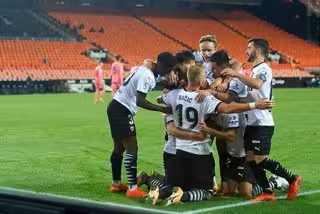 Los jugadores del Valencia celebran uno de los goles de Carlos Soler durante el partido ante el Real Madrid de LaLiga Santander 2020-2021 - Maria Jose Segovia / AFP7 / Europa Press
