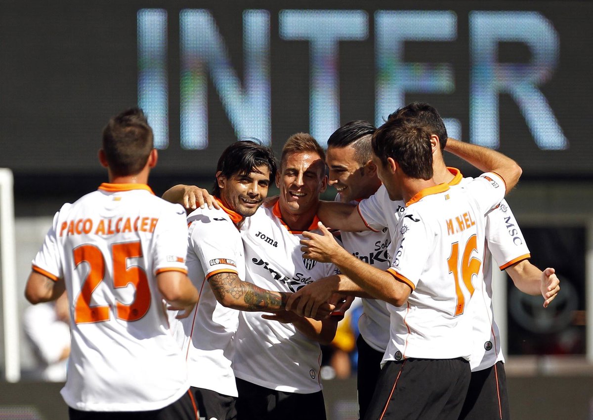 Sin embargo, el Valencia se lamió las heridas con un buen partido y goleada ante el Inter de Milán. Dominando y manejando el balón, los de Djukic ofrecieron un buen espectáculo que empezó pronto con un tremendo derechazo de Banega para abrir el marcador (1-0). El argentino comenzó liderando a los suyos y poco después lo volvió a intentar con otro disparo lejano.