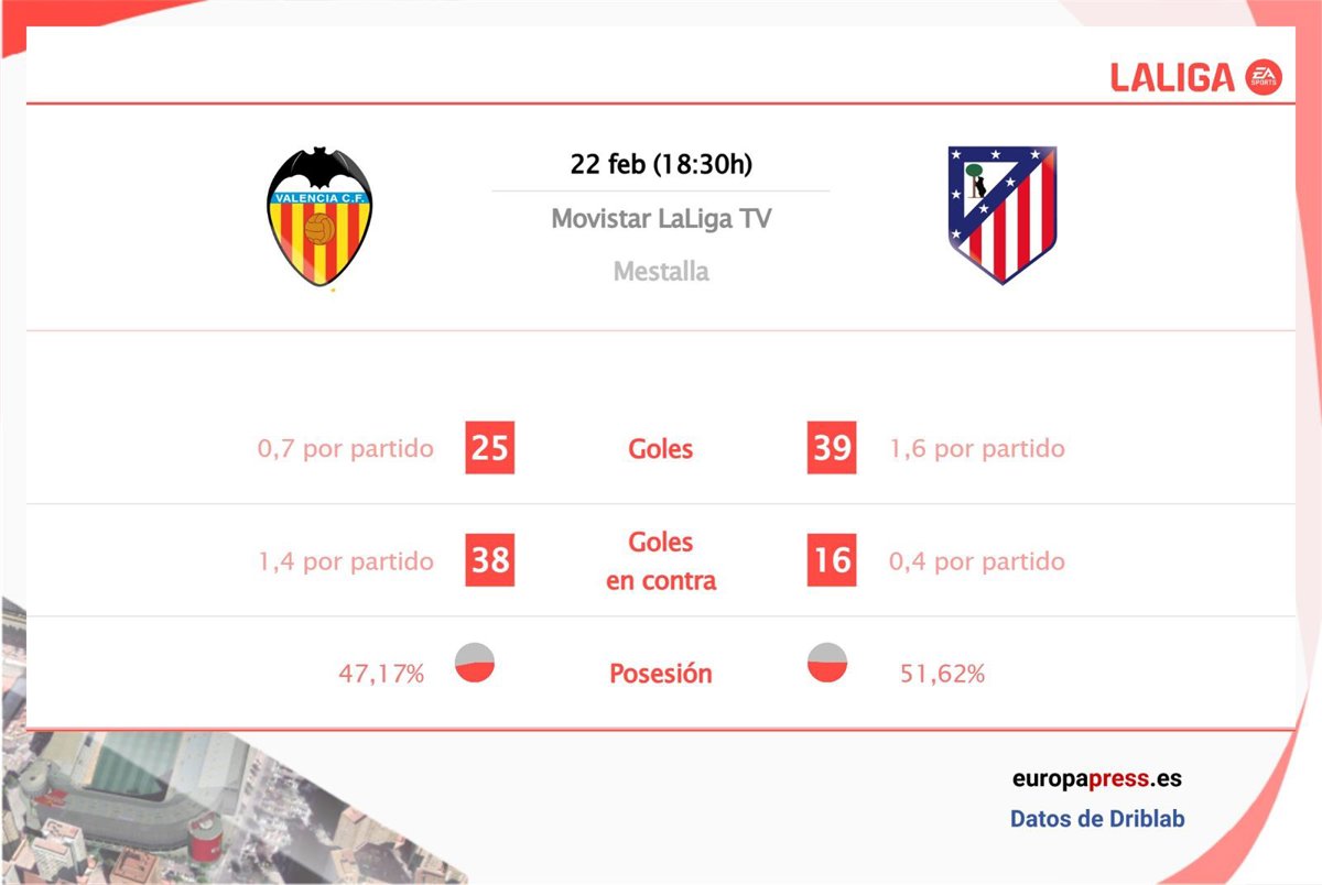Estadísticas previa Valencia vs Atlético de Madrid. - EPDATA