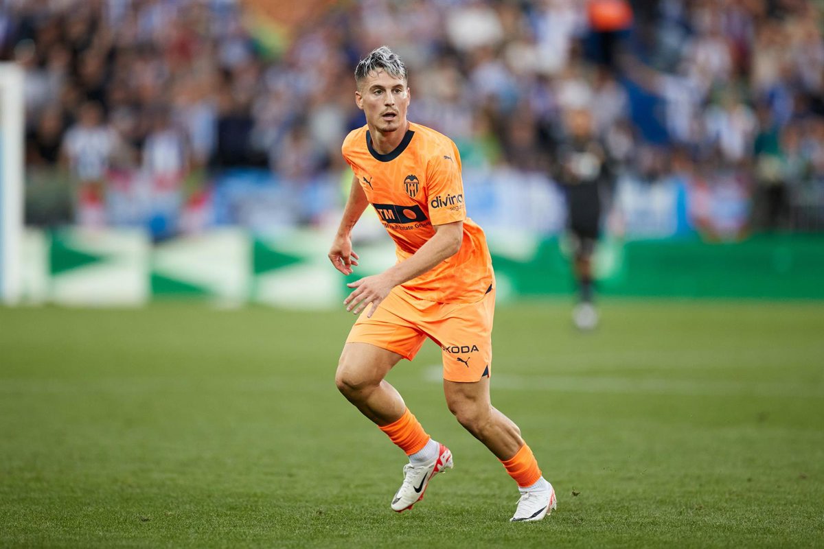 El extremo Sergi Canós, en un partido entre el Valencia CF y el Deportivo Alavés, de LaLiga EA Sports 2023-2024. - Ricardo Larreina / Afp7 / Europa Press