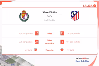 En el ámbito ofensivo, el equipo colchonero mejora los registros de los vallisoletanos en goles por partido con 1,5 goles por encuentro del primero frente a 0,7 del segundo. En cuanto a la calidad de las ocasiones de gol generadas, los madrileños también mejoran a los pucelanos con 1,2 goles esperados frente a 0,6, según las estadísticas de Driblab consultadas por Europa Press.