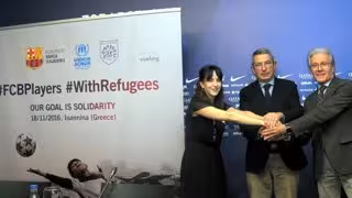 'FCB Jugadors' llevan a cabo esta iniciativa con el objetivo de llamar de atención sobre las dificultades que atraviesan miles de hombres, mujeres y niños con necesidades de protección internacional llegados durante los últimos meses en arriesgadas travesías por el Mediterráneo.