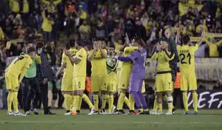 El Villarreal celebra el triunfo por la mínima ante el Liverpool