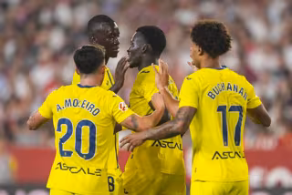 Tani Oluwaseyi celebra un gol con el Villarreal CF junto a sus compañeros en LaLiga EA Sports 2025-26. - Joaquin Corchero / AFP7 / Europa Press