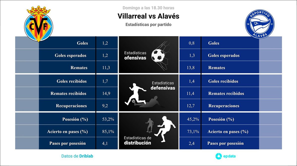 Estadísticas previa Villarreal vs Alavés. - EPDATA