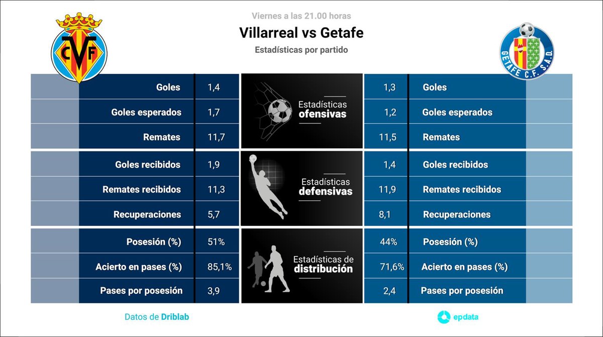 Estadísticas previa Villarreal vs Getafe. - EPDATA