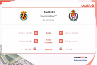 El Villarreal disputa la jornada 22 de LaLiga EA Sports en el Estadio de la Cerámica ante el Valladolid este sábado a las 16.15 (Movistar LaLiga), un encuentro al que llega tras haber empatado ante el Atlético de Madrid, acumulando un punto a los 34 que lleva en la competición. Por su parte, su rival esta jornada, el Valladolid, posee 15 puntos tras ser vencido por el Real Madrid en la pasada jornada.