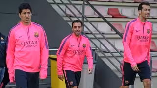 Xavi, que sufrió en el entrenamiento del jueves una pequeña lesión fibrilar en el sóleo de la pierna izquierda, que le hizo ser baja para el partido ante el Elche, sigue siendo duda para el partido contra el Atlético aunque todo dependerá del entrenamiento previo del sábado.
