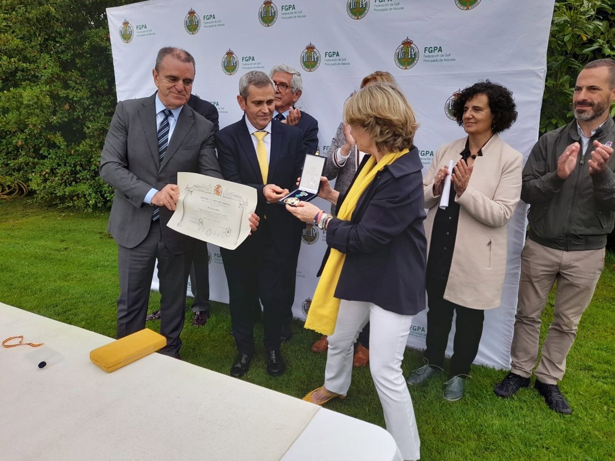 El presidente del Consejo Superior de Deportes (CSD), José Manuel Franco, ha entregado este miércoles en el Real Club de Golf La Barganiza (Siero) la Medalla de Oro de la Real Orden del Mérito Deportivo (ROMD) a título póstumo a la familia de la golfista Celia Barquín, asesinada en 2019 en el campus de la Universidad de Iowa (Estados Unidos).