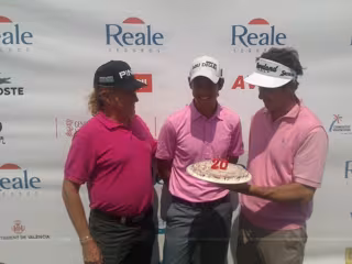 Además, el español, que compartió partido con el veterano Miguel Ángel Jiménez y el joven Matteo Manassero, fue protagonista junto con el andaluz de la tarta con la que se obsequió al italiano, que hoy viernes festejaba su vigésimo cumpleaños. El transalpino reaccionó con una buena tarjeta (68, -4) y pudo superar el corte.