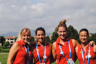 En la competición por equipos las jugadoras españolas, capitaneadas por Maribel García, han sido cuartas con 583 impactos, a sólo dos golpes de la medalla de bronce. En la ronda definitiva han sumado para España Mireia Prat (74) y Ane Urchegui (75), mientras que Belén Buendía (77) quedó fuera.