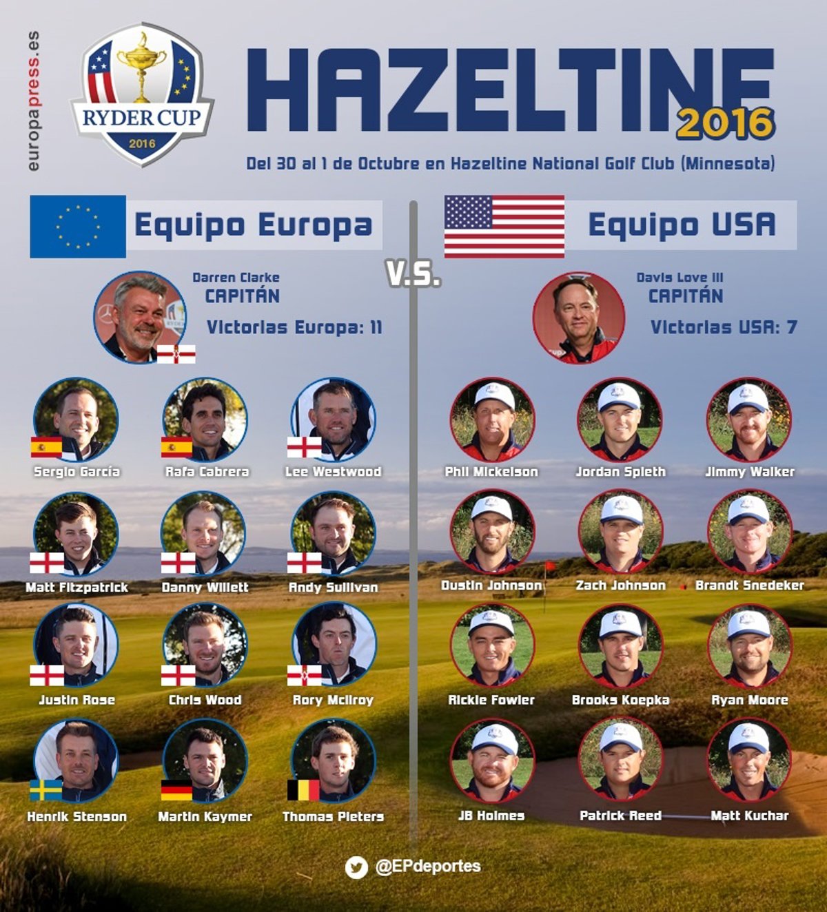 Tampoco hay que olvidar que Europa tendrá en sus filas al campeón del Masters de Augusta (Willet), al del 'British' (Henrik Stenson) y al primer campeón olímpico en más de cien años (Rose), argumentos ante los que los locales enfrentan a Dustin Johnson y Jimmy Walker, ganadores del US Open y el Campeonato de la PGA.