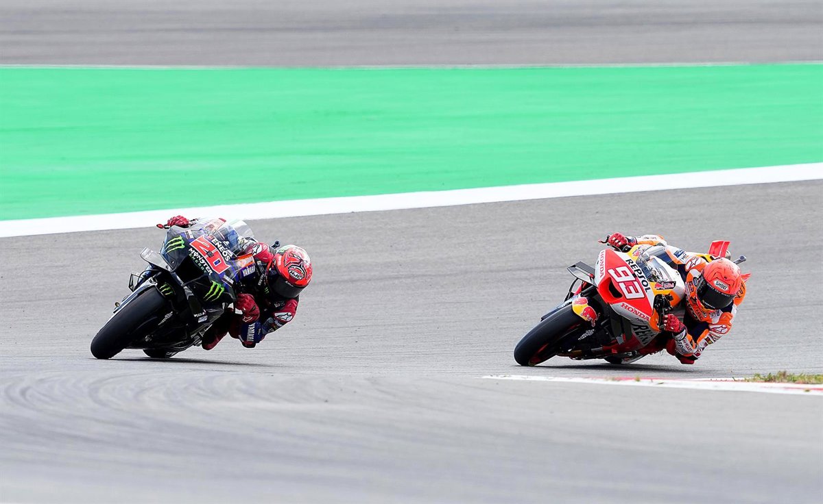 Archivo - El piloto francés Fabio Quartararo (L) del equipo Monster Energy Yamaha y el español Marc Márquez del equipo de fábrica de Honda compiten durante los entrenamientos libres antes del MotoGP de Portugal en el circuito de Portimao - Hasan Bratic/Dpa - Archivo