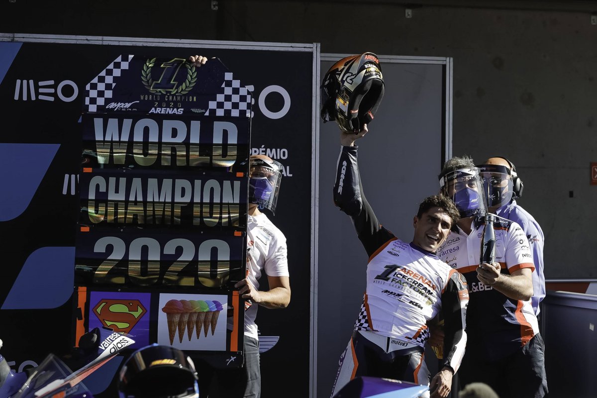 El piloto español Albert Arenas (KTM) se ha proclamado este domingo campeón del mundo de Moto3 después de terminar duodécimo en el Gran Premio de Portugal, última cita del Mundial de motociclismo y en la que se ha impuesto su compatriota Raúl Fernández (KTM), y mantener su ventaja al frente de la general tras una emocionantísima última vuelta.