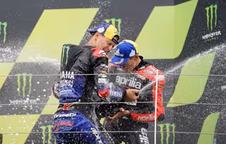 Además, el de Granollers destacó la ilusión de vivir el momento histórico para Aprilia, que logró con él su primera victoria en la categoría reina, aunque no pudo hablar de futuro. "Estoy muy orgulloso de lo que hemos conseguido con Aprilia. Podemos soñar con el Mundial porque estos pilotos que tengo aquí tienen menos puntos que yo y también sueñan, va a ser difícil pero es magnífico. Me gustaría continuar dos años más, pero no solo depende de mí. Me encantaría competir en bicicleta también en algún momento", dijo.