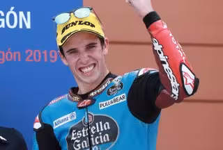 El piloto de Moto2 lex Márquez (Estrella Galicia 0,0 Marc VDS) celebra el triunfo en el GP Aragón 2019 - ESTRELLA GALICIA 0,0 MARC VDS - Archivo