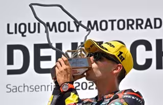Augusto Fernandez, del Red Bull KTM Ajo, celebrando su victoria en el Gran Premio de Alemania¡ - Hendrik Schmidt/dpa