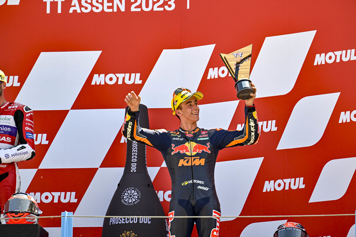 Con 18 años y 123 días, el de La Ñora logra su primera victoria en el campeonato y se convierte en el tercer piloto más joven de la historia en ganar una carrera de Moto2, después de completar una prueba impecable. Mientras, su paisano Acosta se aúpa al liderato de la clasificación de pilotos (156), superando por dos puntos al hasta ahora líder, el italiano Tony Arbolino (Kalex).