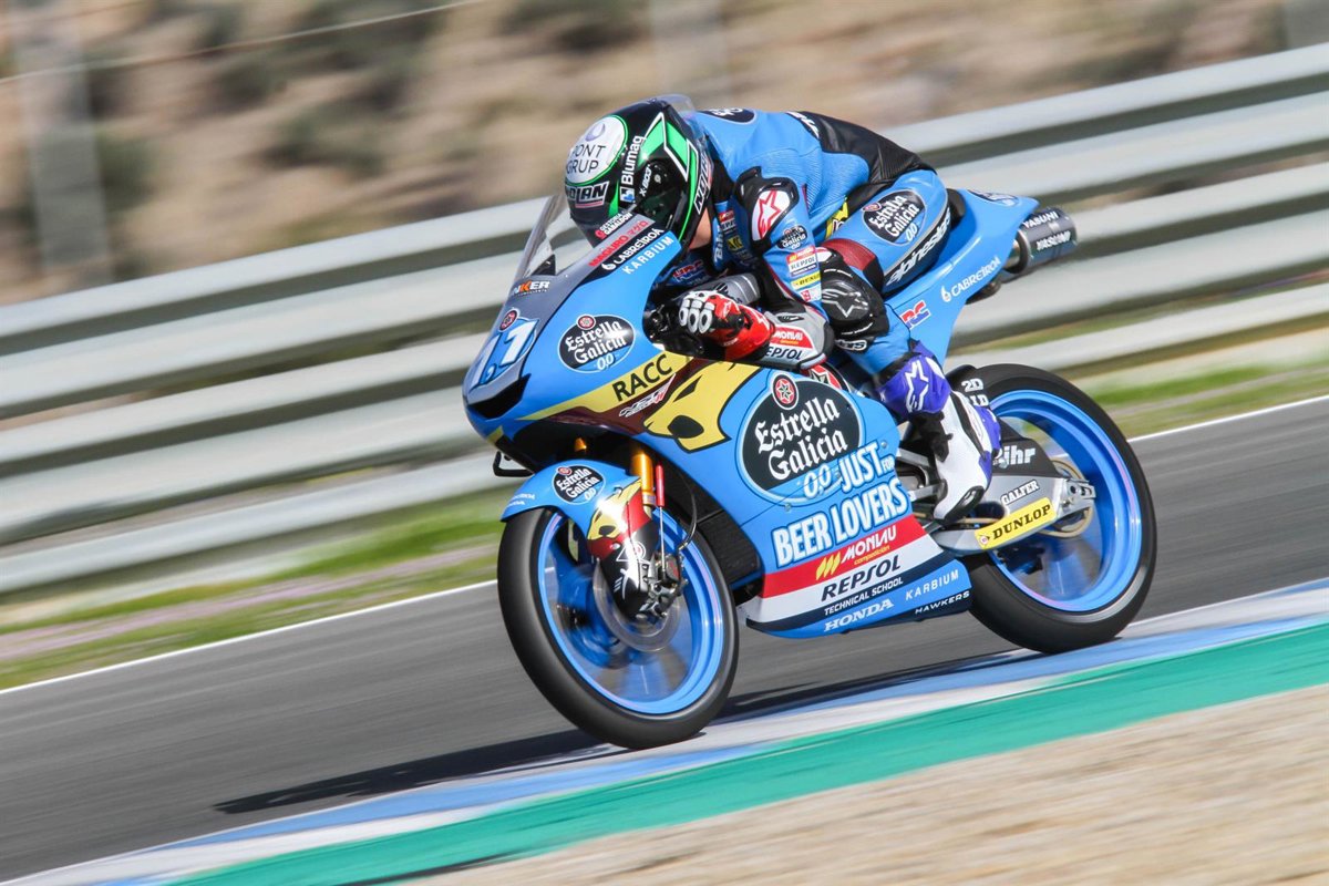 Los pilotos españoles Iker Lecuona (KTM) y Sergio García (Estrella Galicia 0,0) estuvieron muy cerca de establecer el mejor tiempo de la jornada en el primer test para las categorías Moto2 y Moto3, respectivamente, celebrado este miércoles en el circuito de Jerez de la Frontera con los italianos Luca Marini y Tony Arbolino como los más rápidos.
