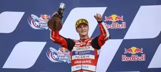 "Me he quedado sin palabras, he entrado al box y se ha vuelto a parar la carrera. Cuando me han dicho que había ganado la carrer* ¡me he quedado sin palabras, y todavía no las tengo! Estoy muy contento", finalizó el joven corredor mallorquín.