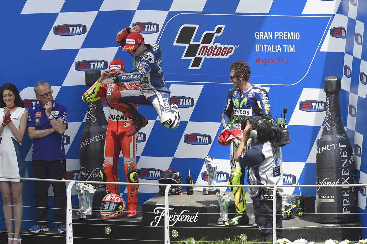 El piloto español Jorge Lorenzo (Yamaha), que ha logrado este domingo su tercera victoria consecutiva en el Mundial de MotoGP en el Gran Premio de Italia, se ha mostrado "contento" por sentirse muy cómodo con su montura, lo que le ha permitido distanciarse de sus rivales con un gran "margen".